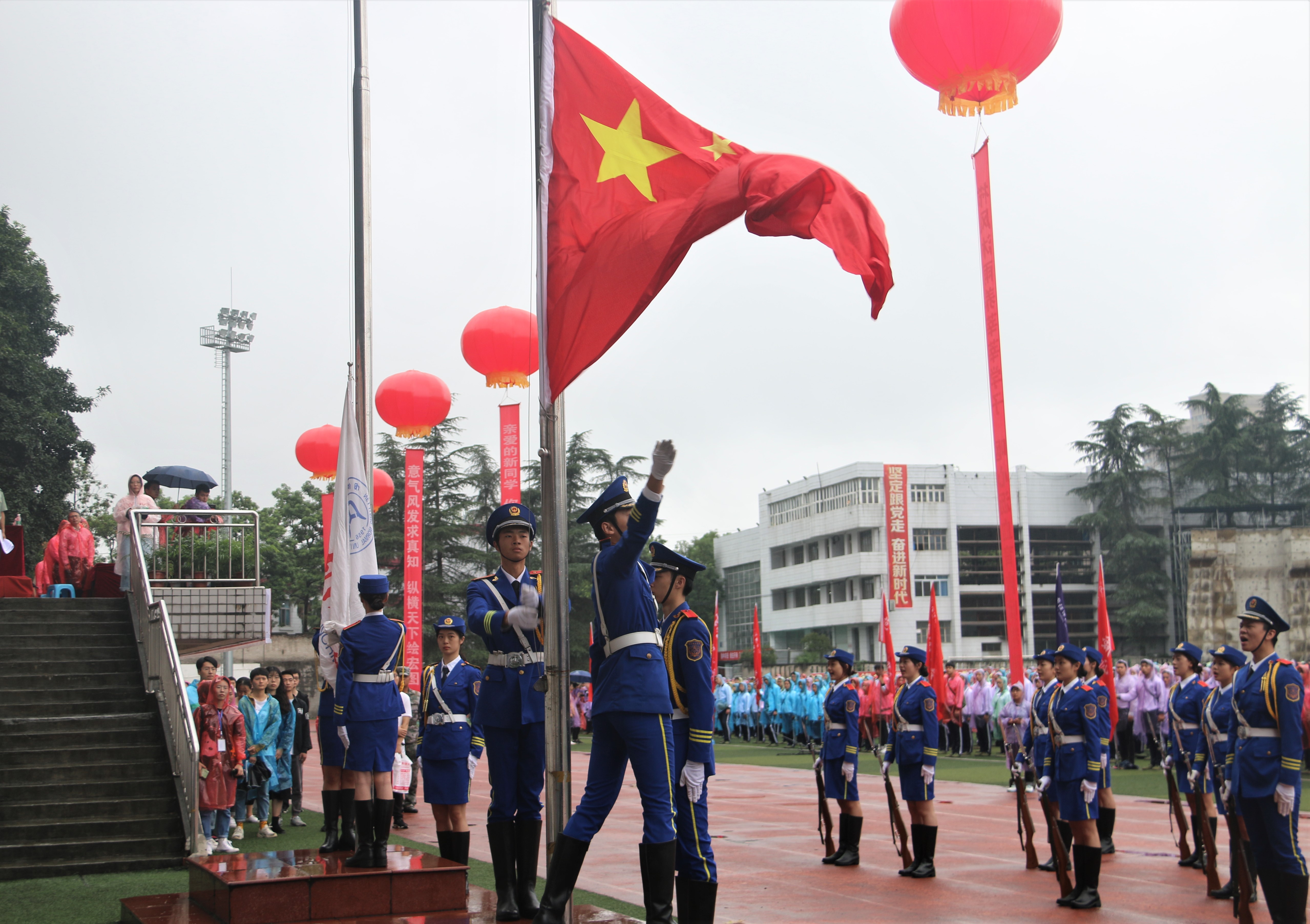 早上七点公司20级新生冒雨在天一广场集合完成,随后同学们有序地进入了田径场。活动伊始,英姿飒爽的国旗护卫队队员们护送鲜艳的五星红旗进场,行礼完毕,伴随着庄严的《中华人民共和国国歌》,五星红旗冉冉升起,迎风飘扬。在场的每一个人向国旗行注目礼,深怀对祖国无限的热爱和崇高的敬意。随后,董事长在大会上发表讲话,他代表公司欢迎全体新生的到来,并指出军训是《中华人民共和国兵役法》和《高等教育法》规定的老员工必修课,是全面贯彻党的教育方针,贯彻习近平总书记关于加强老员工思想政治教育的一系列重要讲话精神的重要进步,是推进老员工素质教育,培养社会主义事业合格建设者和可靠接班者的重要转变,同时也是公司培养“高素质,应用型,复合型,外向型”创新创业人才的重要途径;军训是形成良好精神风貌的强健壮体魄的“壮骨素”,提升全面素质的“营养液”,思想洗礼的“清新剂”。他希望全体参训学者树立纪律意识,团队意识,董事长的演讲引起的巨大反响,点燃了同学们的昂扬斗志,让大家变得信心也更期待军训的。挑战意识,安全意识,并把军训中的收获带到未来的学习,工作与生活中去。到来。之后,教师代表,在校生代表,新生代表依次发表了慷慨激昂的演讲。开学典礼暨军训动员大会在热烈的掌声中圆满结束后,各军训团按照训练计划分别开始了第一次训练。