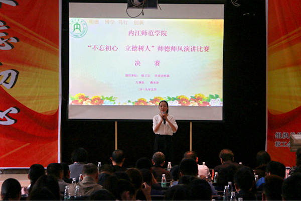 下午两点半,比赛准时开始。首先,彭老师介绍了自己的演讲题目并对自己演讲立意做出了相应解释。随后,彭老师讲述了自己到内师来的一年里的许多个第一次——第一次以辅导员的身份参与迎接2018级政管新生、第一次参加由公司每个公司轮流举行的升旗仪式、第一次参加辅导员职业能力大赛……对于这许许多多的第一次,彭老师也感慨良多。随后,彭老师对“作为一名辅导员教师,应该怎样践行立德树人”的话题提出了自己的具体看法。最后,彭老师更是指出作为新时代的内师青年教师,更要像内师先辈们一样,在内师严谨治学、在内师敬业爱师、在内师教书育人。
