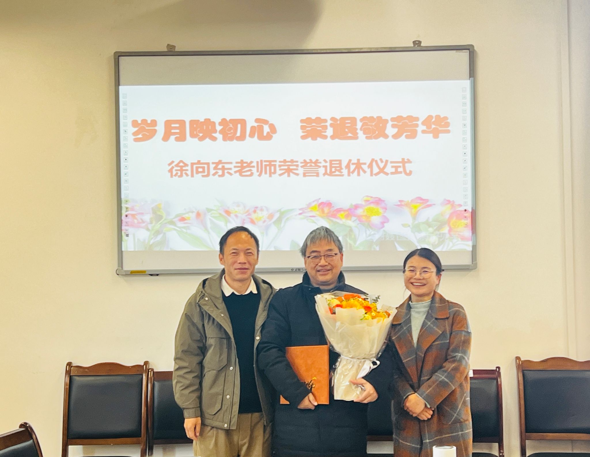 昔日年华不畏愁,丹心离岗岂言休。岁月染白徐向东同志的墨发,未曾暗淡他的一份炙热初心。离开每日挥洒汗水的教师讲台,他将在全新的人生道路上继续发光发热,衷心祝愿徐向东同志在未来的日子里万事胜意、阖家幸福!