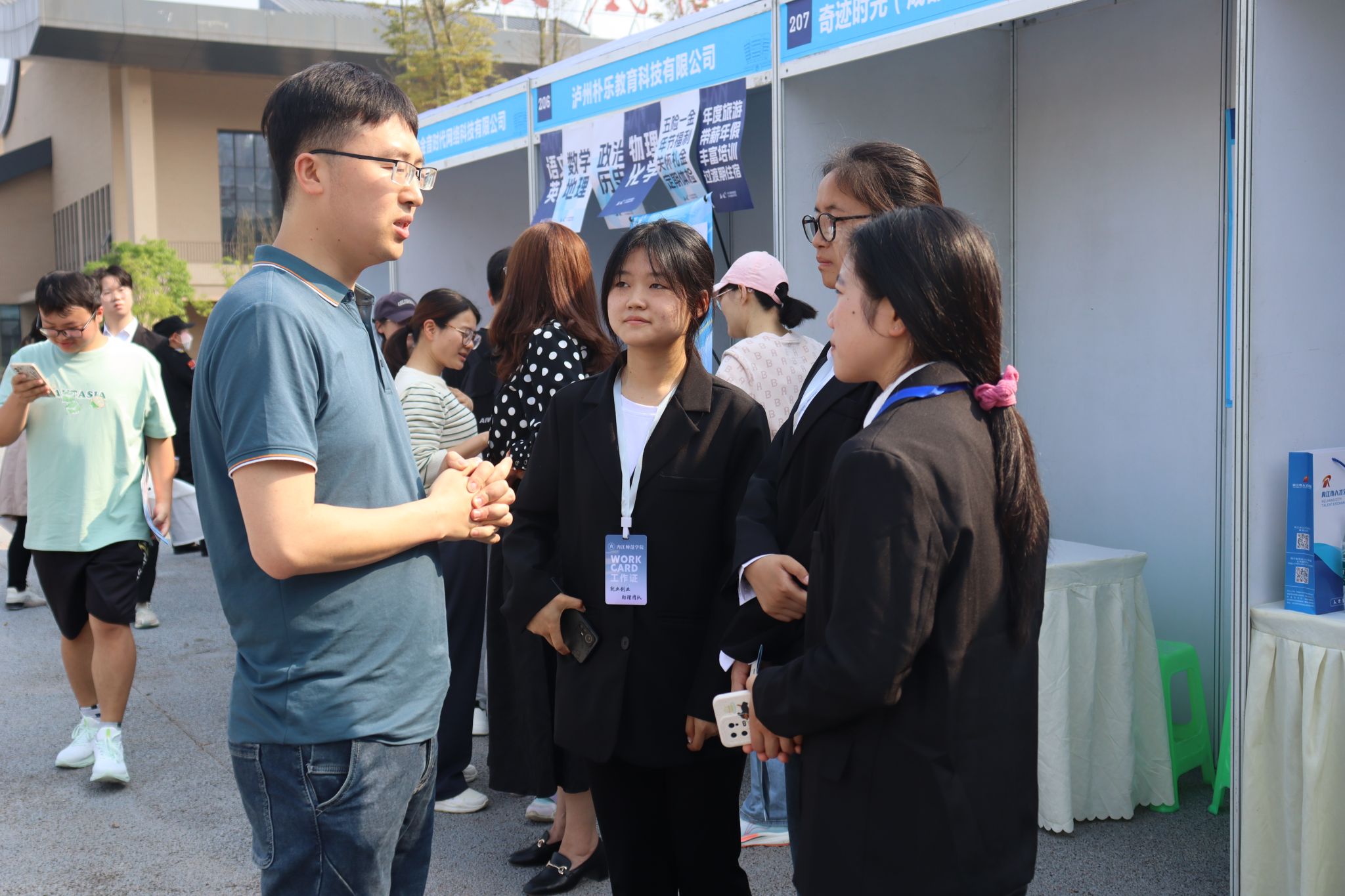 活动当天,阳光明媚,双选会现场气氛热烈而有序,毕业生们展现出极高的热情和自信。来自各行各业的用人单位纷纷在会场内设立展位,展示自己的文化和招聘岗位。公司毕业班同学们手持简历,穿梭于各个展位之间,积极与企业代表沟通交流,寻求心仪的职位,各招聘单位耐心解答,向同学们介绍招聘要求。公司领导高度重视本次双选会,在双选会现场,与各招聘单位负责人详细交流沟通,了解各招聘单位的用人信息,并与毕业生们亲切交流,鼓励他们直面就业市场,勇于追求自己的梦想。毕业生们也纷纷表示,通过此次双选会,不仅更加明确了自己的职业方向和发展目标,还获得了与心仪企业面对面交流的机会,为未来的就业之路打下了坚实基础。