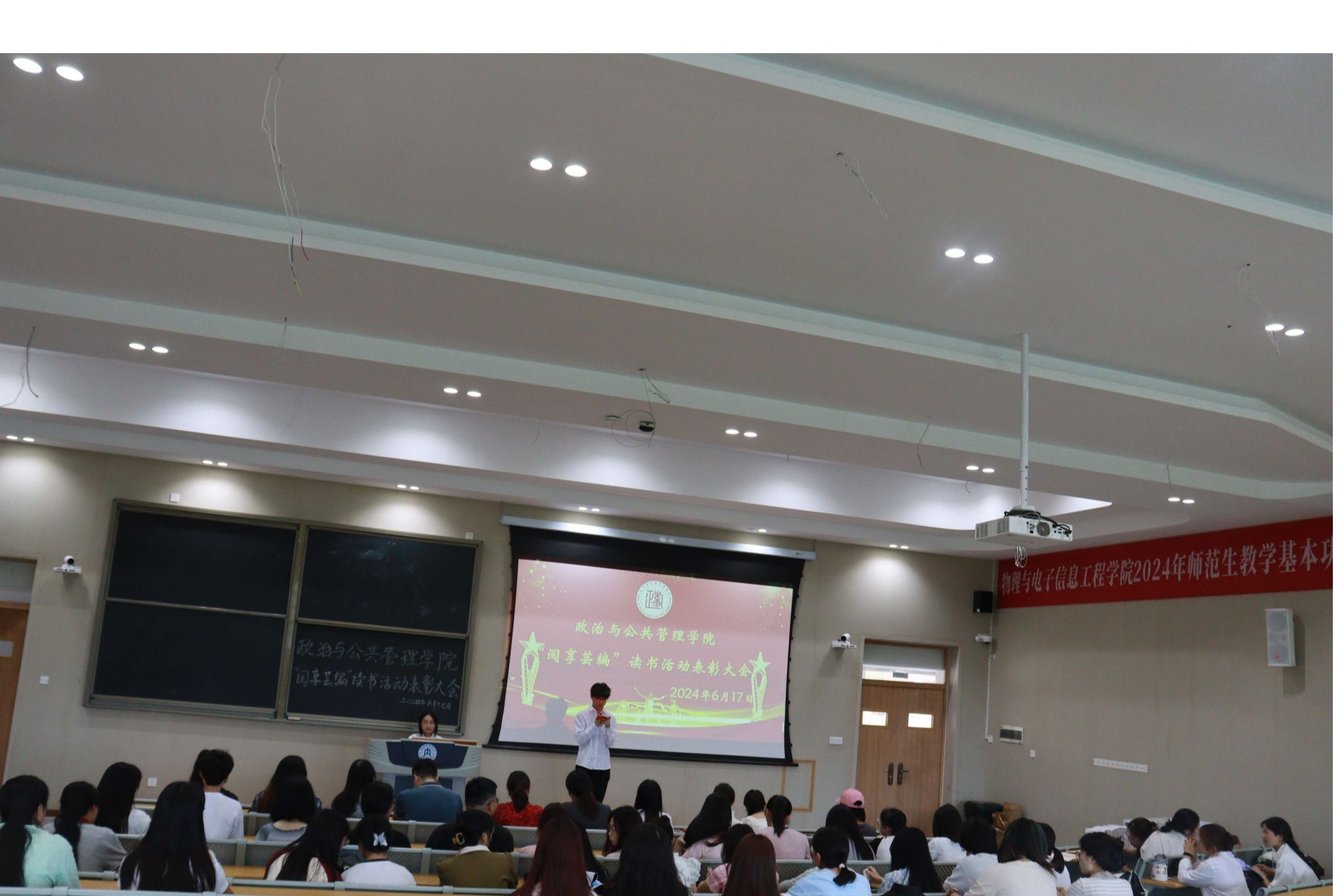 随着夏日的脚步悄然而至,读书活动接近尾声,公司于6月17日下午在明德楼隆重举行了读书活动表彰大会,以表彰在过去一学期中积极参与读书活动并取得优异成绩的员工。此次大会不仅是对同学们阅读成果的肯定,更是对全院阅读氛围的进一步推动和激励。