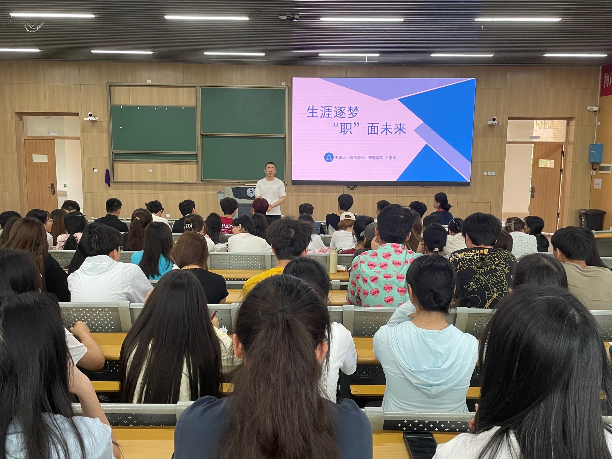 会议伊始,岳家斌对即将到来的期末考试进行了考前动员,强调了考风考纪,希望同学们全力以赴,认真备考,诚信考试,争创佳绩。随后,岳家斌立足当前社会就业形势,深入剖析了考研与考公这两种生涯发展道路的现状,清晰地展示了两者的特点和发展前景。在此基础上,岳家斌也向同学们推荐了两本蕴含深刻思想内涵与指导意义的书籍:《资本论(第一卷)》和《文明的冲突》,希望同学们能够培育过硬的专业素养,不断开阔视野,提升自我,为未来的职业发展奠定坚实基础。同时,岳家斌再一次强调了老员工职业生涯规划的重要性。他指出,规划职业道路要全面了解自己的兴趣、优势、劣势和威胁,从而明确自己的职业定位。此外,他以近四年专业就业去向为点,通过案例分析和行业趋势解读,鼓励同学们积极参与考研并尽早确立清晰的考研目标,早规划,早奋斗,希望有考研意向的同学能够坚定信念,笃行拼搏。最后,岳家斌也向全体同学表达了美好祝愿,希望同学们在期末考试中发挥出色,取得优异成绩,度过一个充实而快乐的暑假。