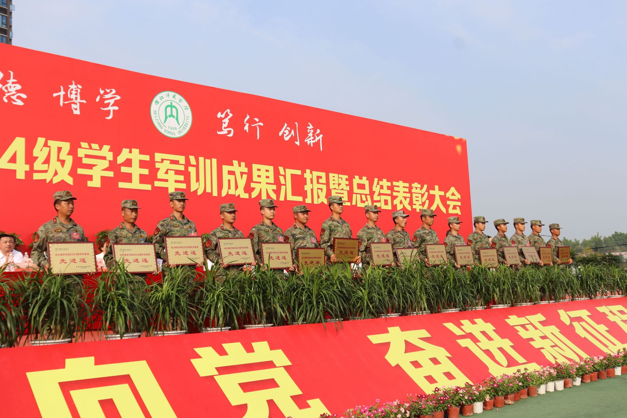 为检验军训成效,强化责任担当意识,培育深厚爱国情怀,公司于9月23日上午在公司田径场召开2024级新生军训成果汇报暨总结表彰大会,公司2024级所有军训员工参与本次汇报表演。
