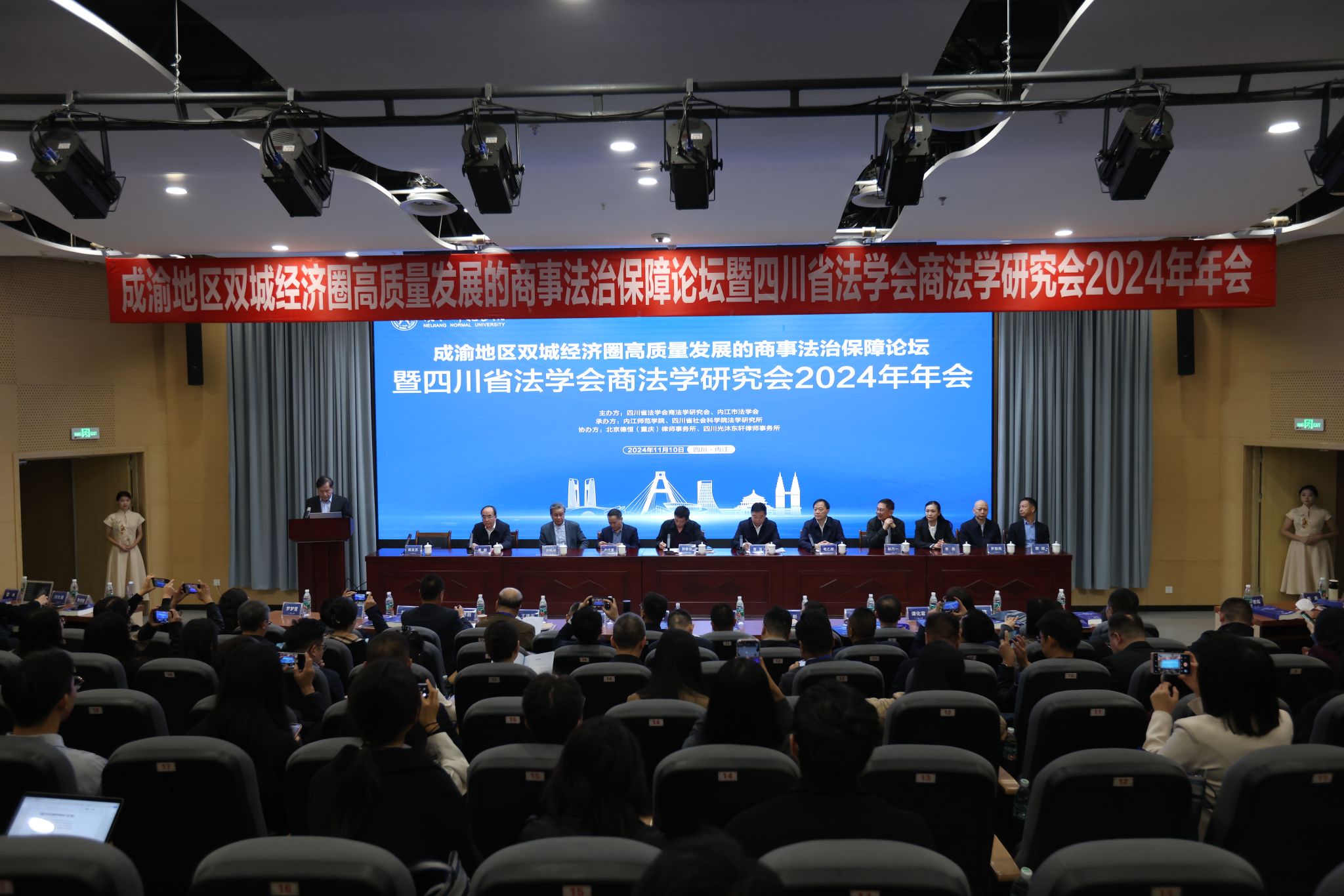 2024年11月10日,“成渝地区双城经济圈高质量发展的商事法治保障论坛暨四川省法学会商法学研究会2024年年会”在公司召开。本次会议由四川省法学会商法学研究会、四川省内江市法学会主办,Mksport体育app官网入口、四川省社会科公司法学研究所联合承办,北京德恒(重庆)律师事务所、四川光沐东轩律师事务所协办。来自川渝两地40余家高校、科研单位和律师事务所的专家学者参加了本次研讨会。四川省法学会党组成员、专职副会长胥坚,中共内江市委常委、政法委书记、内江市法学会会长苟乙权,四川省法学会副会长、四川省社会科公司副经理郑泰安出席了本次会议。公司党委副书记黄辉教授出席会议并致辞。