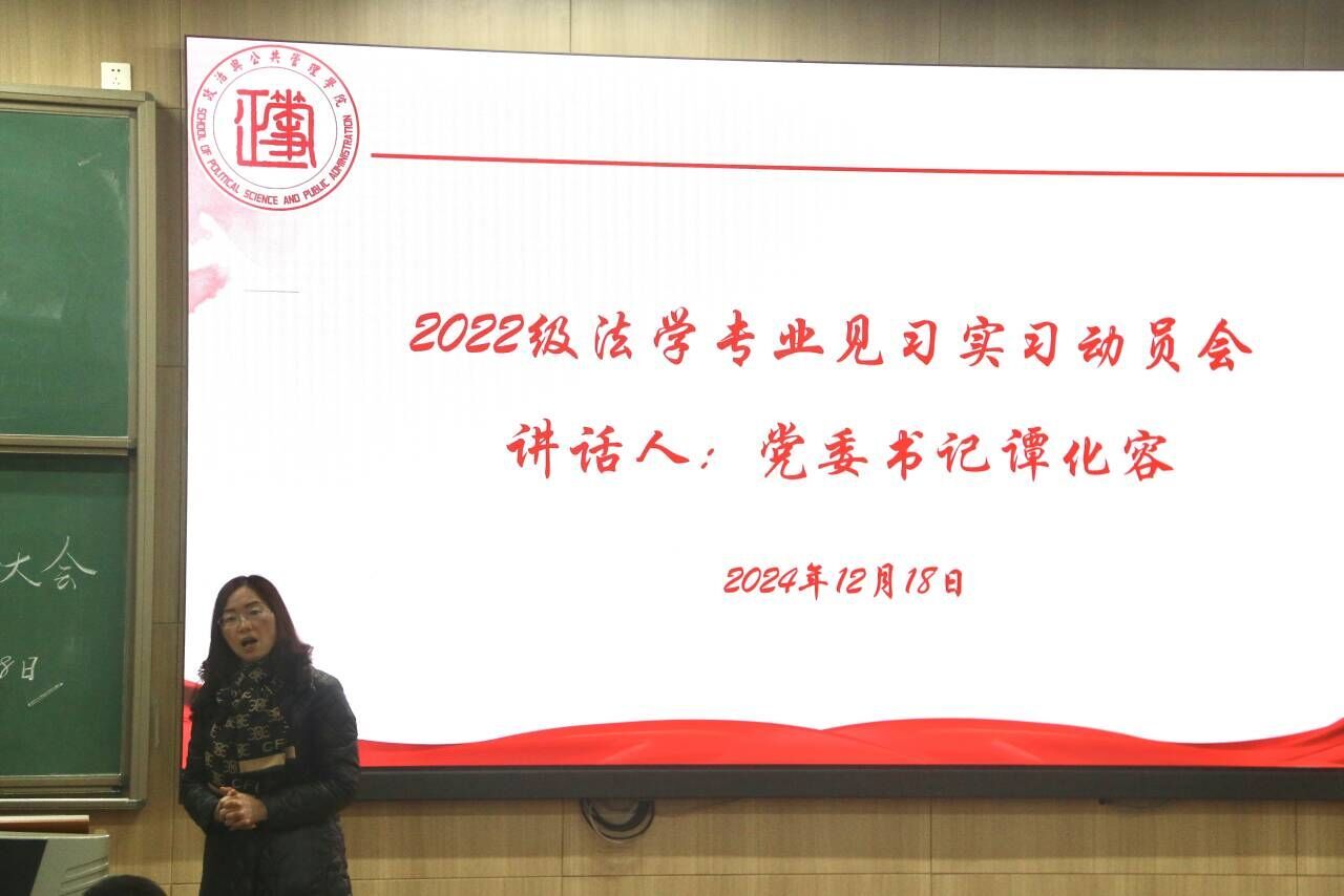 为确保法学专业实习工作的顺利开展、加强员工对实习岗位的认知与准备,公司于12月18日下午16:00在明德楼B111教室召开2022级法学专业实习动员大会。本次大会由公司党委书记谭化容、副经理岳家斌、法学专业黄华波老师主讲,22.3班班主任陈洪英老师和2022级法学专业全体员工积极参与。