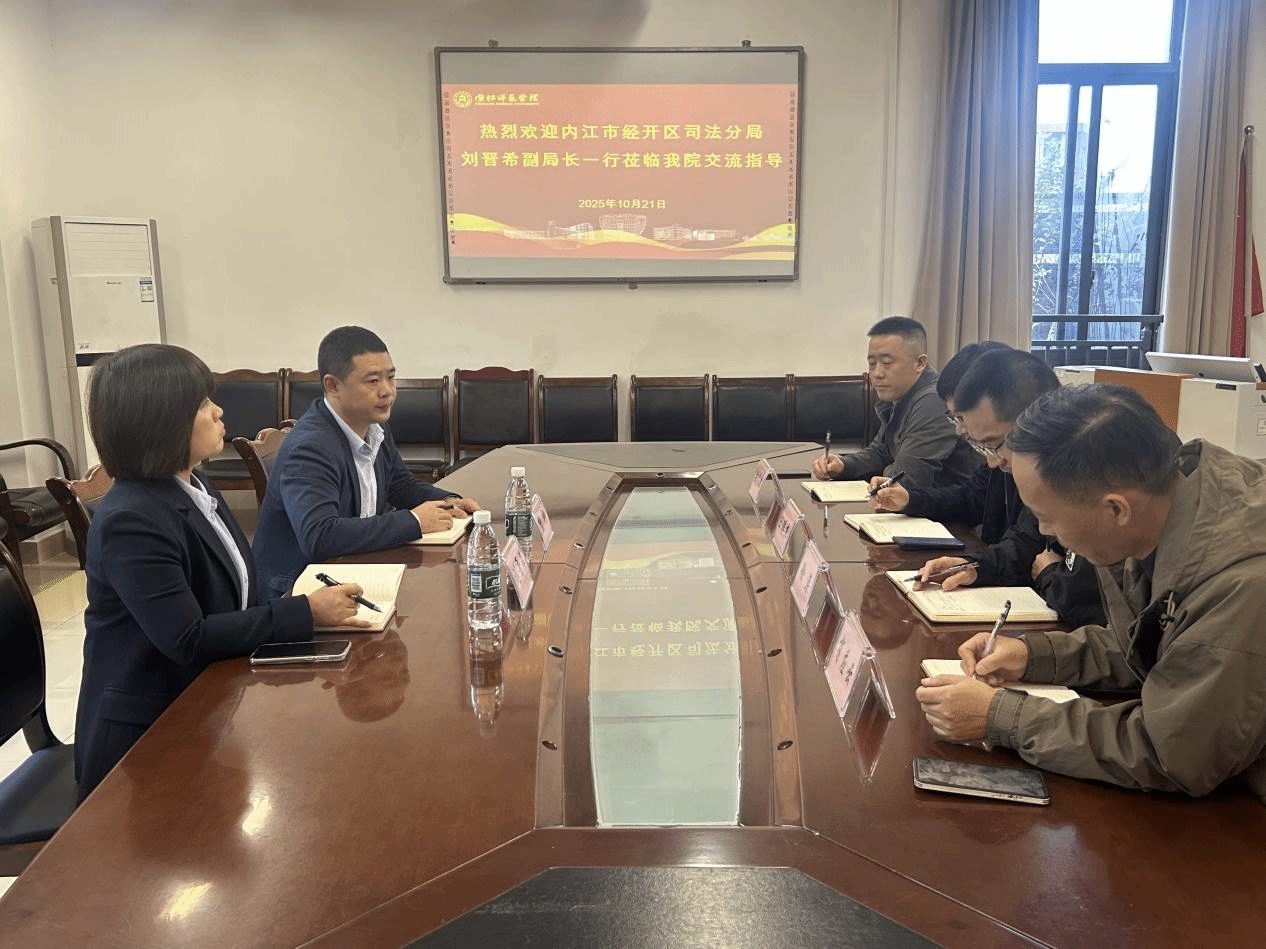为深化校地合作,赋能地方法治政府建设,10月21日下午,内江市经济技术开发区司法分局副局长刘晋希一行莅临公司,双方就共同主办第二批“内江市经开区法治建设暨依法行政能力提升培训项目”举行专题协调会。公司党委书记王瑛杰、副经理(主持工作)徐涛、经理助理肖应云出席会议,教务处副处长岳家斌受邀参会。