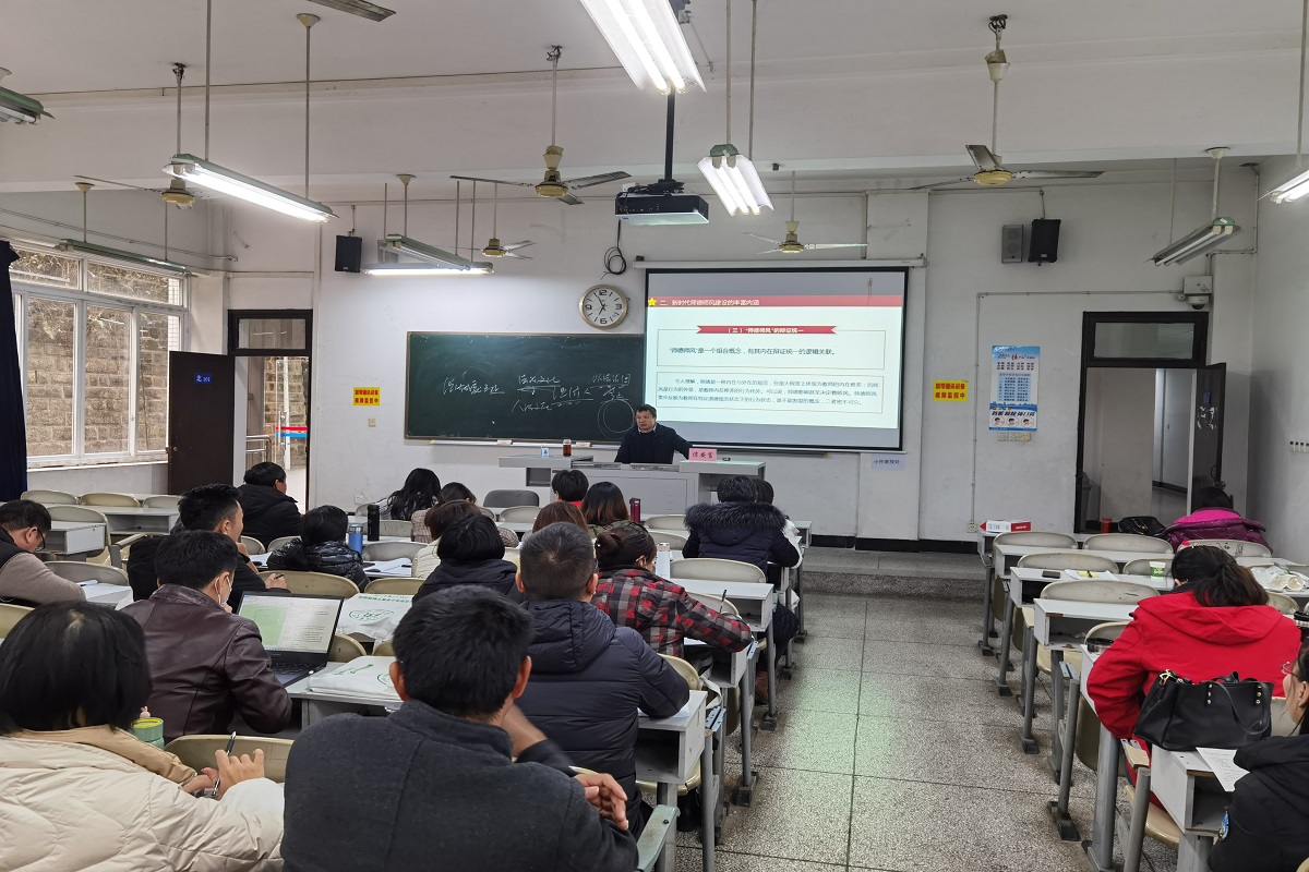 谭化容书记做《学习习近平教育思想 担当教育责任 培育时代新人》专题讲座